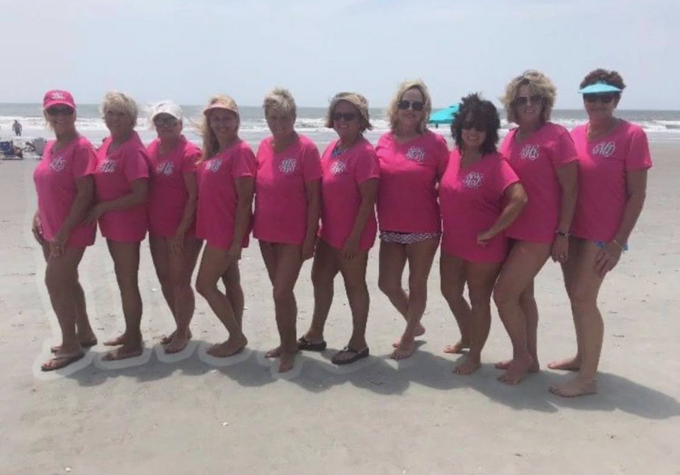 “There were 10 of us girls that met about the same time in 2017 in Augusta, and somebody came up with the idea to do a girls beach trip to Myrtle Beach,” says Howell. “That’s when we named ourselves the ‘Beach Babes.’ We’re all old; we’re not young chicks, but that’s OK!”