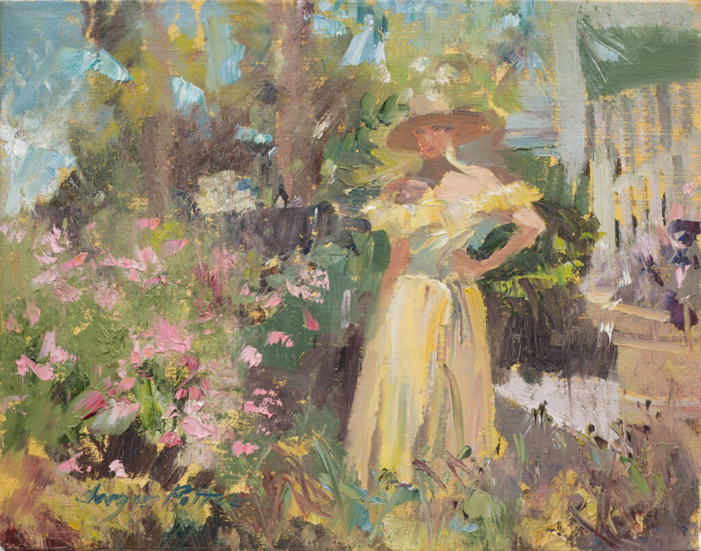 The Pettees have lived in Myrtle Beach for ten years and have a large inventory of paintings. She is not currently represented by a gallery. This month’s cover art is titled ‘Claire in the Garden’ and is owned by a collector.