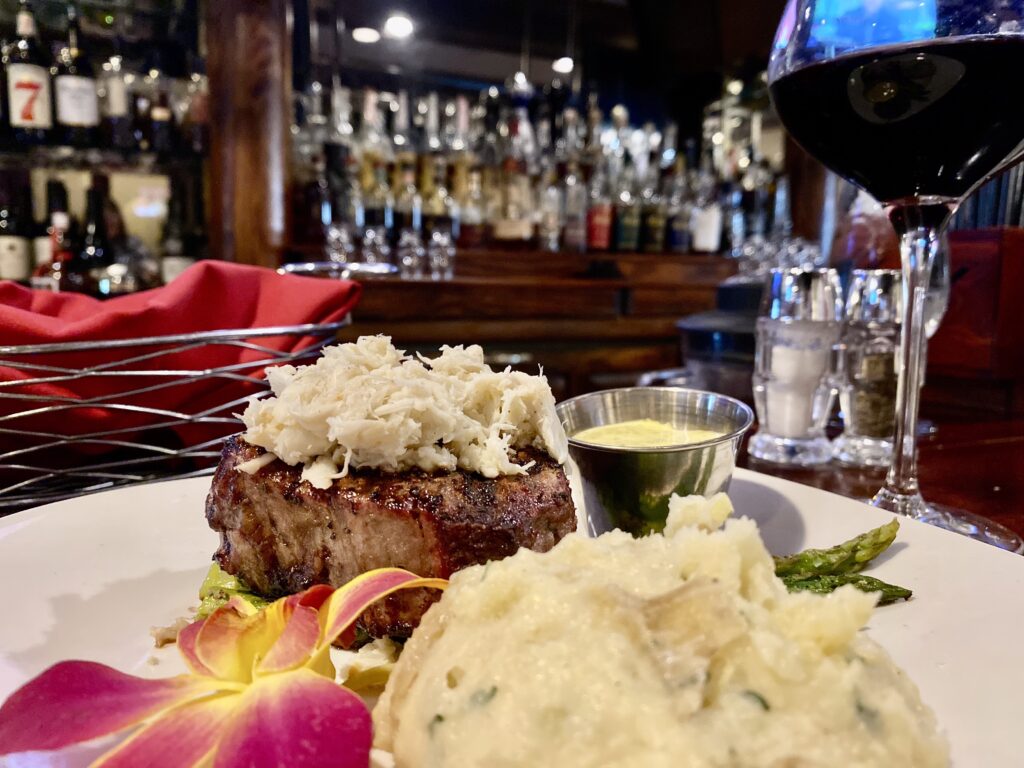 I had a glass of Meomi Pinot Noir out of Monterey, CA, that paired nicely with my Filet entree, presented Oscar-style. The filet temperature was spot on, the mashed potatoes were creamy and inviting, and the grilled asparagus was awesome. The Béarnaise had a silky, slightly thicker texture than I was accustomed to, and after a few bites, it was decidedly the best iteration of the classic tarragon sauce that I’ve had.
